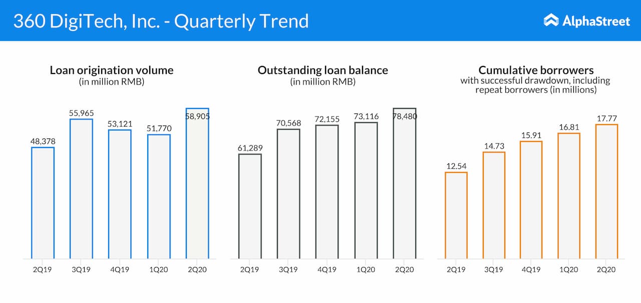 In the quarter ended June 2020, 360 DigiTech recorded loan originations of RMB 58.9 billion, catering to a total of 17.77 million borrowers. It represents a 22% growth from the same period of last year. Adjusted profit climbed 36% annually to RMB 942 million during the quarter, aided by a 50% growth in revenues to RMB 3.3 billion. The outcome marked an improvement from the prior quarter, supported by a whopping 68% fall in operating expenses. At the end of the last fiscal year, the company had 81 institutional funding partners comprising peer-to-peer associates and financial institutions.