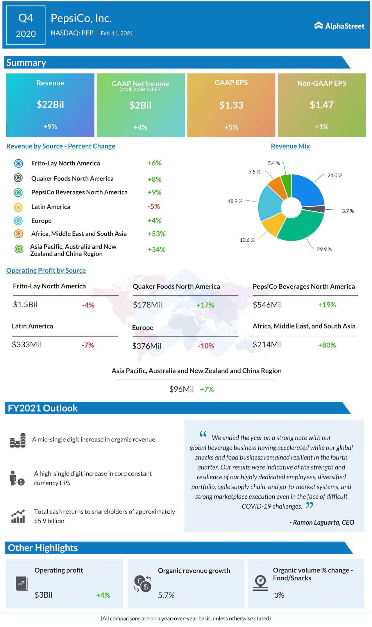 PepsiCo Inc. (NASDAQ: PEP) reported fourth-quarter 2020 earnings results today.