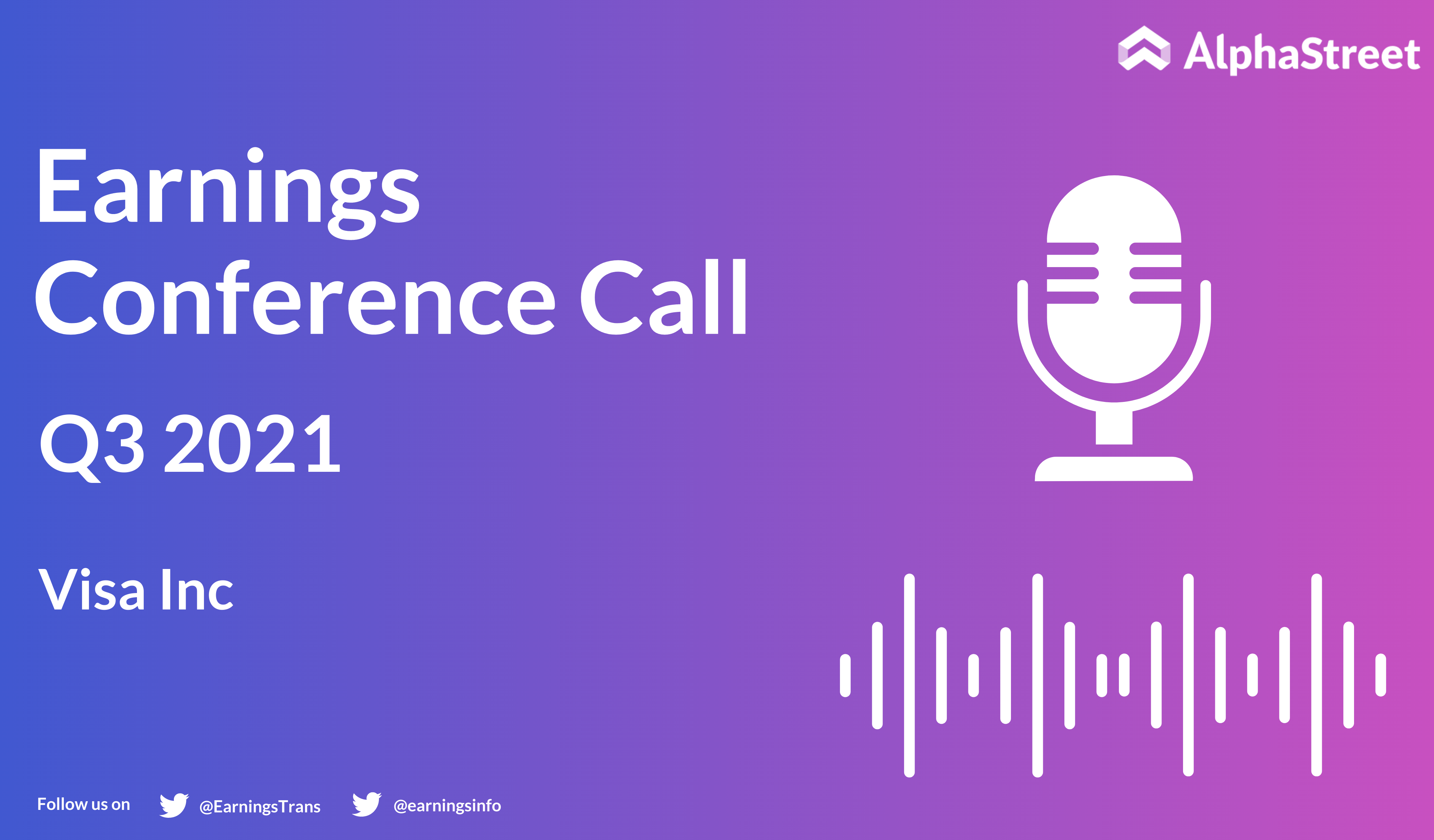 Visa Inc. (NYSE: V) Q3 2021 earnings call dated Jul. 27, 2021 Corporate Participants: Jennifer Como — Investor Relations Alfred F. Kelly — Chairman and...